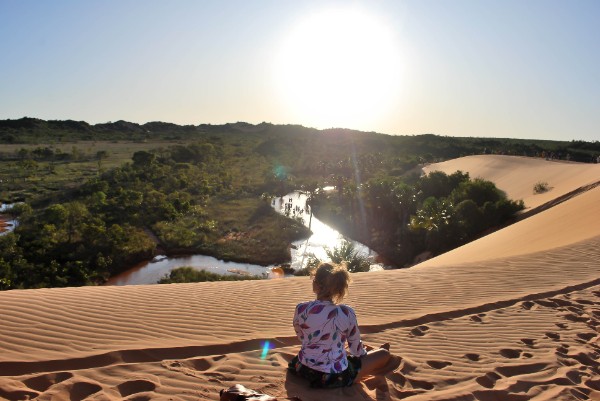 seguirmos para um dos pontos mais esperados da viagem: as Dunas do Jalapão. Lá, o pôr do sol pinta o céu em tons dourados e alaranjados —